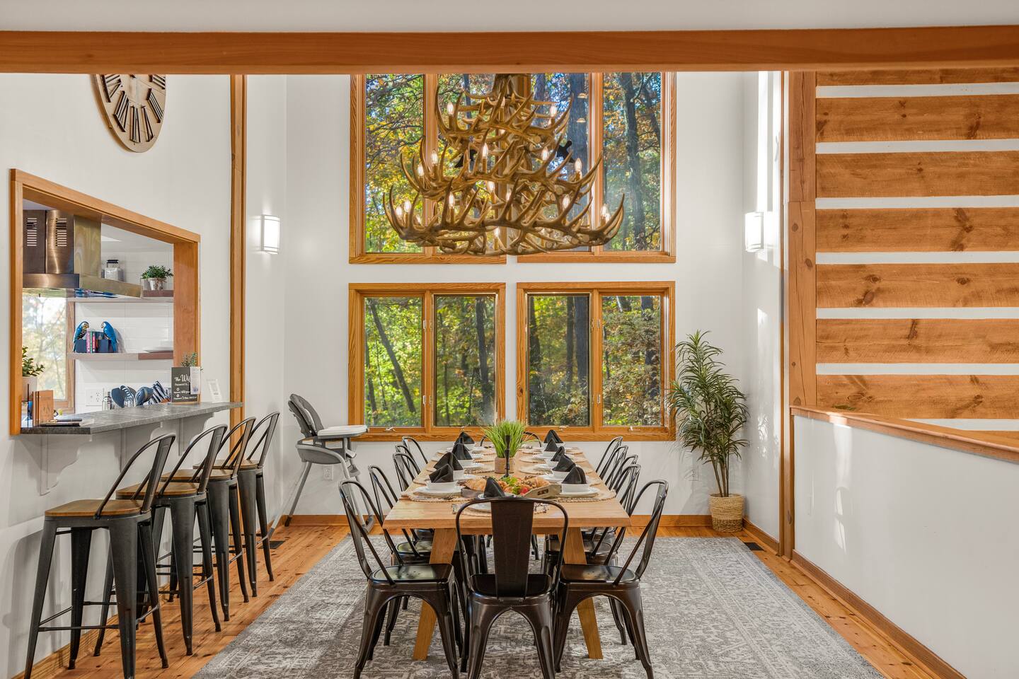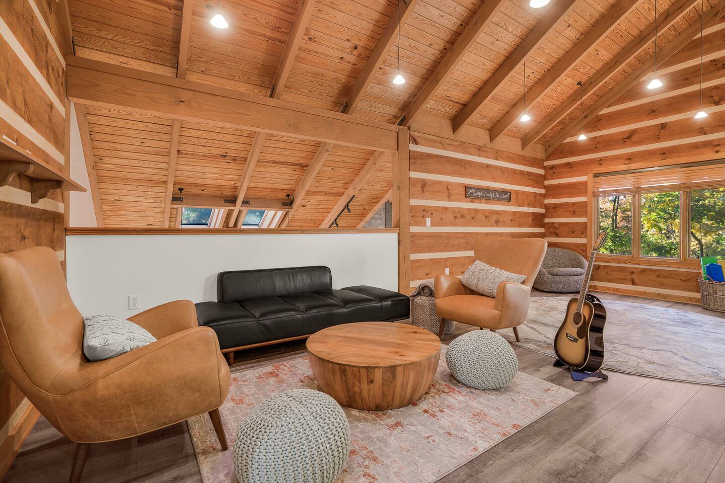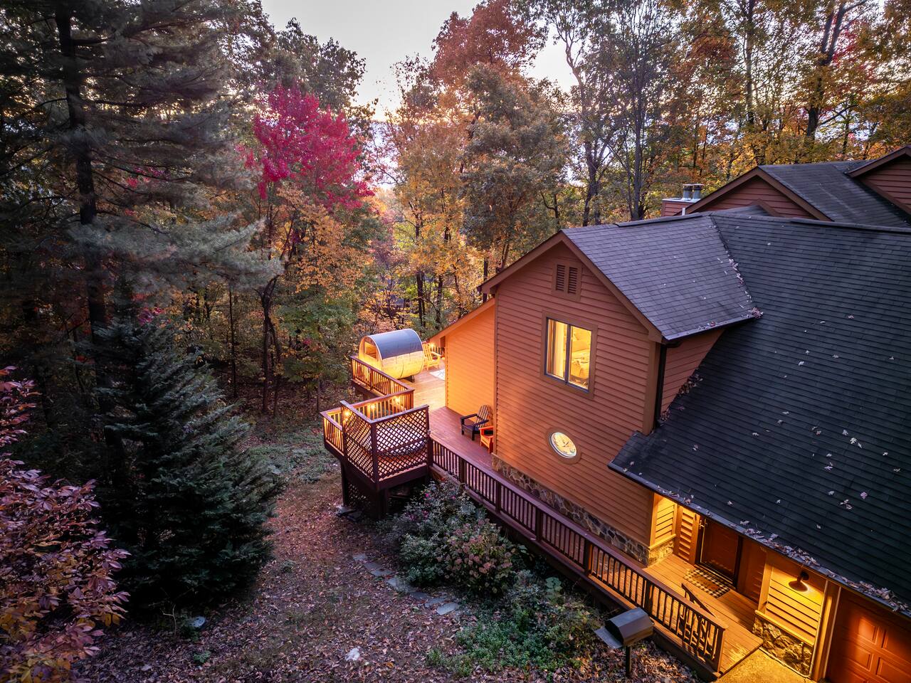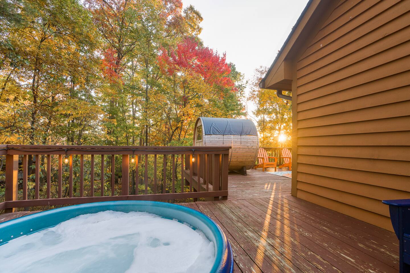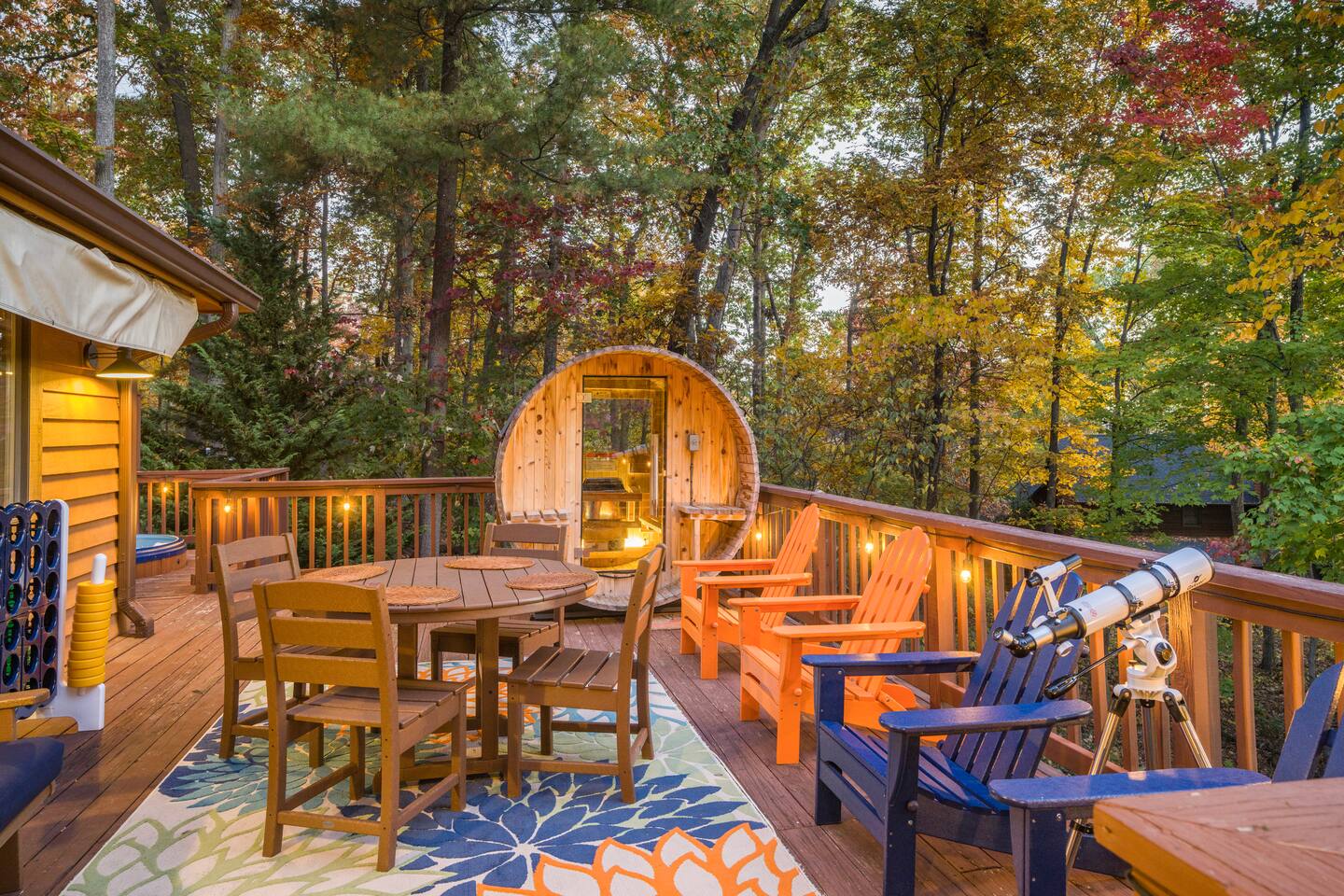 Welcome to Wild Paws Haven, a 5,500+ sq ft modern mountain cabin designed for gathering and relaxation in the heart of Massanutten! Outside, you'll feel immersed in nature in the screened in porch, or head out to the deck to indulge in the barrel sauna and sunken hot tub. The designer-decorated interior features huge common areas perfect for larger groups, 5 well appointed bedrooms, and an Audiophile 9.2.4 surround sound home theater. Plus, pet friendly! Managed by Chris at New School Hosting.