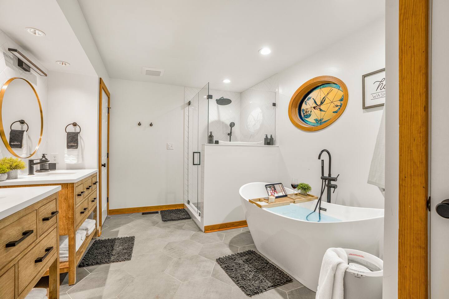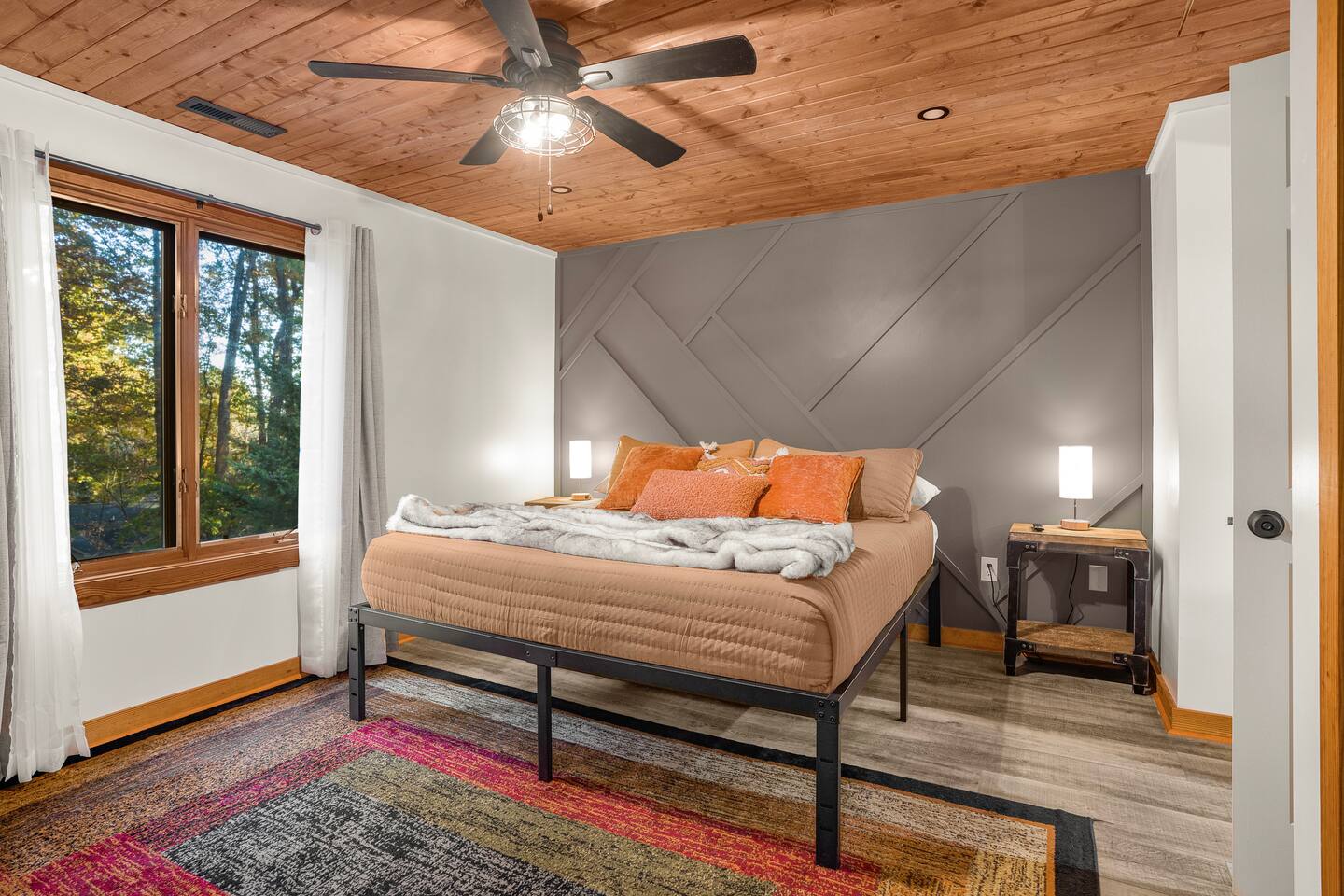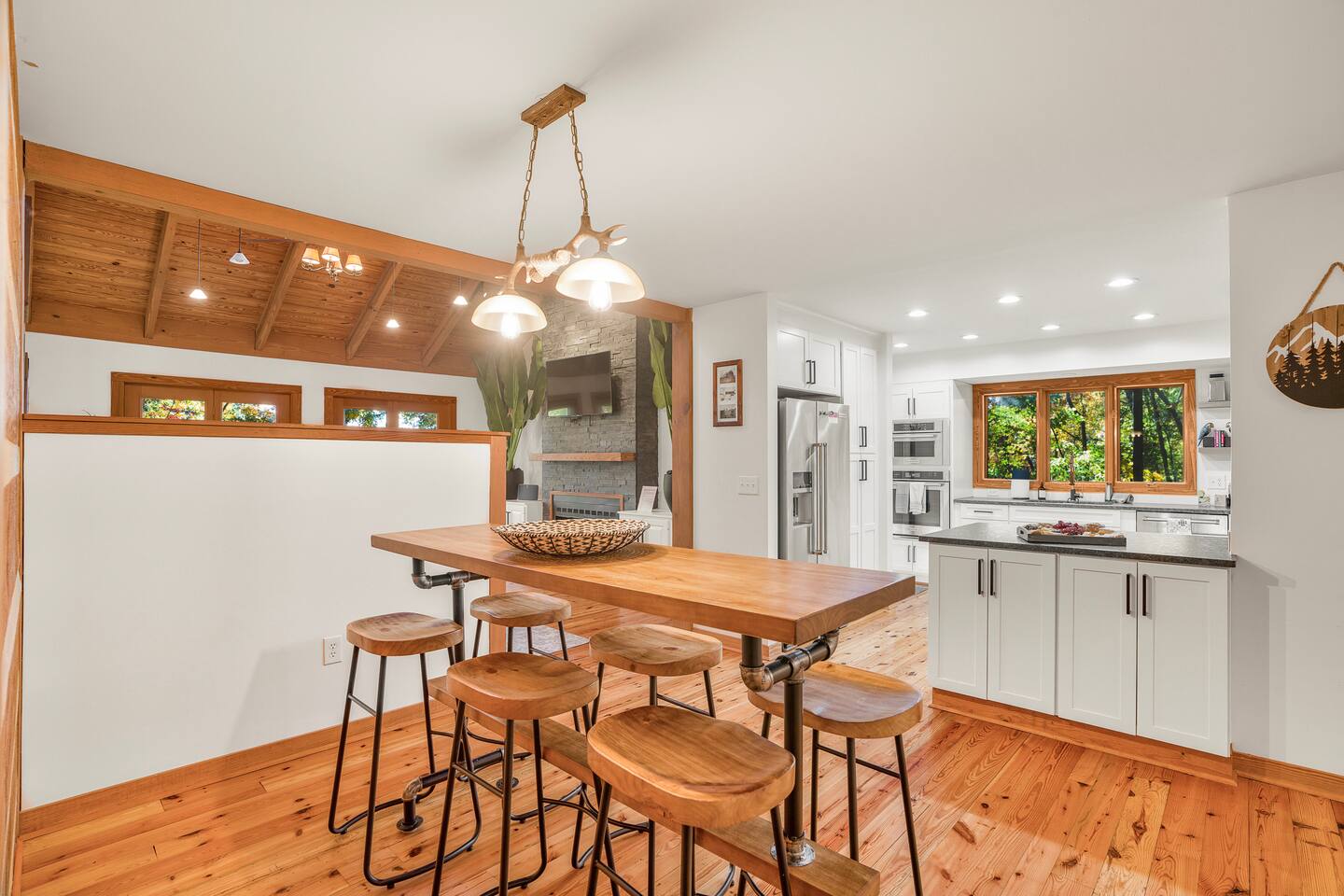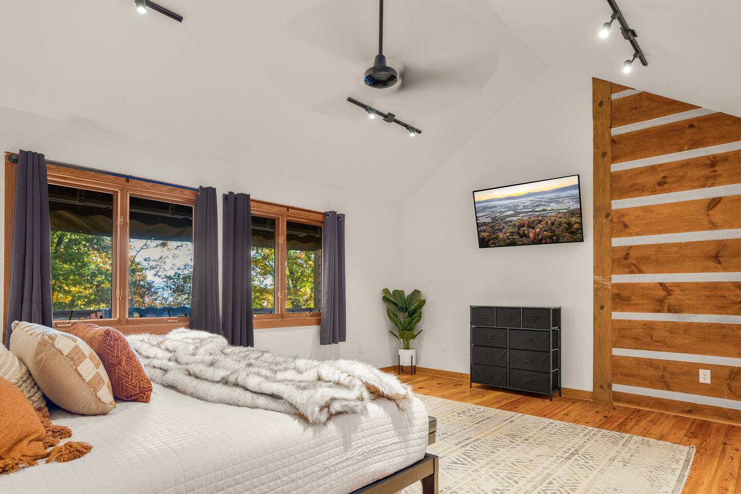 Welcome to Wild Paws Haven, a 5,500+ sq ft modern mountain cabin designed for gathering and relaxation in the heart of Massanutten! Outside, you'll feel immersed in nature in the screened in porch, or head out to the deck to indulge in the barrel sauna and sunken hot tub. The designer-decorated interior features huge common areas perfect for larger groups, 5 well appointed bedrooms, and an Audiophile 9.2.4 surround sound home theater. Plus, pet friendly! Managed by Chris at New School Hosting.