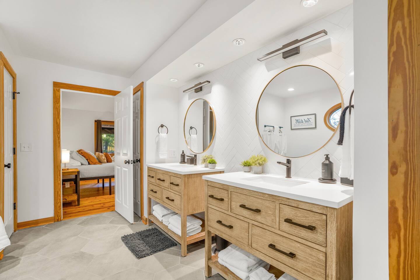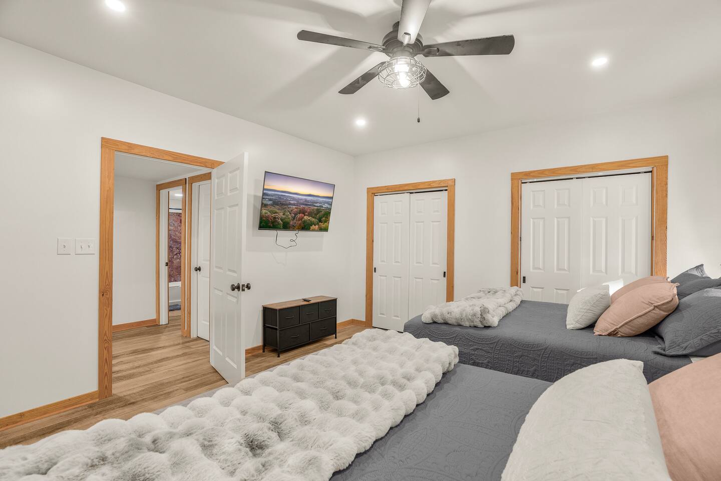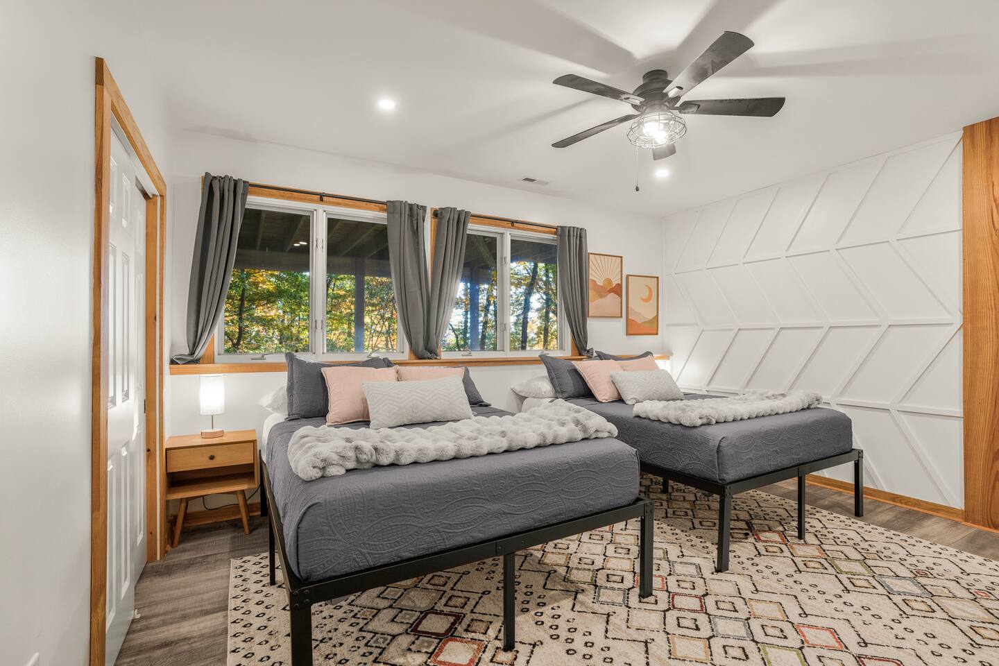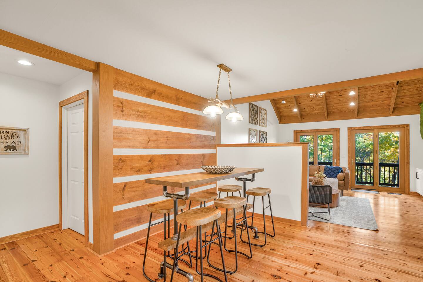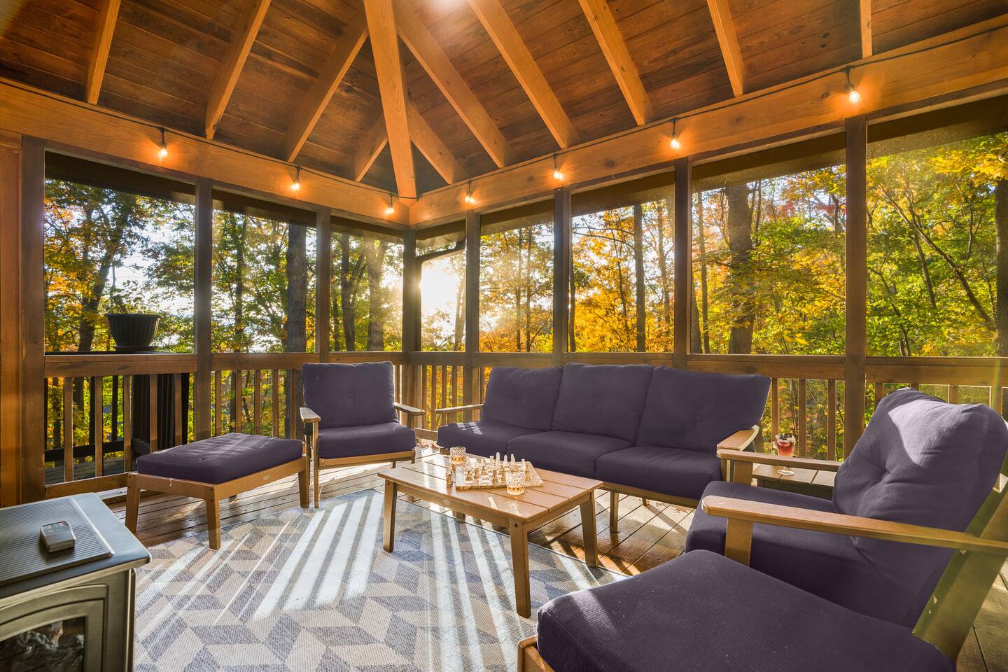 🏎️ Mins to all Massanutten Resort activities 💦 Hot Tub & Sauna 🎥Theater Room 🎱 Billiards Room 🏓 Game Room- Air Hockey, Ping Pong 🔥 Gas log Fireplace 🍔 Charcoal Grill ★ Amenity-rich outdoor space for endless fun 🛀🏻 Bath Spa ~ Soaking tub w Towel Warmer 💦🎿⛳️Community Amenities 💻 GIGABIT+ Hi-speed WiFi 🧑🍳Fully Equipped Kitchen 🍿 Popcorn machine with complimentary popcorn kits ☕️ Coffee & Tea Station 🪑Huge Deck Areas and Screened Patio 📺 Streaming TV’s in every room ‼️ Min Renter Age 25 🛣️ Distance to: 1 mi 》Massanutten Resort activities 12mi 》James Madison University and Historic Harrisonburg 12mi 》Shenandoah National Park 27mi 》World Famous Luray Caverns 40mi 》Charlottesville, VA POOL NOTICE: We offer owners access to an outdoor pool on the resort during your summer stay for a small fee(just $6 per person). The pool is open from Memorial Day weekend to Labor Day weekend. If interested please check into the recreation center on the left side behind the Campfire Grill. THE GATHERING PLACE ——————————————————————— 》Expansive great room combining kitchen and dining areas 》Fully equipped kitchen with eat-in dining table, featuring: 》Complete set of cookware, bakeware, and utensils 》Essential cooking oil, spices, and seasonings 》Complimentary premium coffee, tea, sugar, and creamer 》Large dining table comfortably seating 16 guests 》Breakfast Nook Table seating 6 guests 》Cozy ambiance with a gas fireplace 》Smart TV and SONOS Play RELAX ——————————————————————— 》Hot tub and Sauna 》Bath Spa ~ Soaking tub ~ towel warmer 》Huge Deck Area 》Screened-in for the times you want to stay indoor but still stay close to nature 》Year-round mountain views from this space 》Yoga/Reading/Meditation area ENTERTAINMENT & FUN ——————————————————————— 》9.2.4 Channel Surround Sound Home Theater with 120in Projector screen 》Billiards Room with 8ft pool table 》Extensive board game collection for endless entertainment 》PATIO/DECK 》Jumbo Connect4 》Corn hole set 》GAME ROOM 》Air Hockey 》Ping Pong 》Game coffee table with both Checkers and Chinese Checkers 》Yoga/Reading/Meditation area 》Smart TV with inbuilt Hulu and SONOS Play 》Toys for toddlers and babies SLEEPING ARRANGEMENTS ——————————————————————— ★ Main Level 》Master bedroom: King bed and en suite full bathroom with huge soaking tub, walk in rain-head shower, walk-in closet, 55" Smart TV 》Half Bathroom on main level ★ Upper Level 》King bedroom with attached full bathroom with tile shower/tub, closet, 55" Smart TV 》King bedroom with shared bathroom, closet, 55" Smart TV ★ Lower Level 》Queen bedroom with two queen beds with closet and with tile shower/tub, 50" Smart TV 》Queen bedroom with two full beds with closet and shared bathroom, 50" Smart TV ★ High-speed Wi-Fi ★ Keyless entry ★ EV Charging - 50A plug (BYO-charging cord/plug) ★ Entrance door, driveway, and rear woods area security cameras ★ Heating/Air Conditioning ★ Washer/Dryer ★ Private parking for up to 5 cars (additional parking for 3-4 vehicles available in front of the property) Other things to note: PARKING ——————————————————————— 》You can park two cars in garage which can be accessed from inside via laundry room. 》Driveway can also accommodate 3 cars with careful arrangement 》Easier Street Parking Available(3-4 cars) Note: **4WD still needed to reach the cabin in icy/snowy conditions** SECURITY ——————————————————————— For your safety and security, there are two cameras on the property. The discreet doorbell camera is positioned to monitor the main entryway. Cameras on the side of the garage monitor the driveway. None of the cameras face private areas like the hot tub or rear deck. All cameras are continuously recording. COMMUNITY RECREATION AMENITIES (Onsite/Nearby* Extra charges applicable) ——————————————————————— 》Skiing, snowboarding, ice skating and tubing in winter 》Canoe, Kayak, River Tubing and Fishing 》Indoor and outdoor waterparks for year-round fun 》Hiking, mountain biking, zip-lining, bicycle trails and horseback riding 》Two scenic 18-hole golf courses 》Mountain coaster rides and community pools 》Spa services, including massages and facials 》Family-friendly activities like video arcade, mini-golf, go-karts, and bumper cars NEARBY ATTRACTIONS ——————————————————————— 》Shenandoah National Park – Skyline drive, breathtaking overlooks, and wildlife, just 20 minutes away 》Luray Caverns – Explore the world famous Luray caverns just a short drive from the house 》George Washington National Forest – A haven for hikers, hunters, and nature lovers 》Shenandoah River – Perfect for kayaking, canoeing, and tubing 》Local Towns – Explore the charm of nearby Harrisonburg, Luray, and Elkton, with their boutique shops and dining 》Wineries & Breweries – Sample local flavors at CrossKeys Vineyards, Bluestone Vineyard, and Pale Fire Brewing (see complete guidebook for more) GUEST ACCESS Guests have access to the entire property except for the mechanical room and the unfinished storage space. Lastly, this property is located within an HOA that requires the community rules to be posted here, so here are those rules: WELCOME TO MASSANUTTEN! This home is in a private residential neighborhood and is part of the Massanutten Property Owners Association (MPOA), governed by its rules and regulations. There are rental homes in all MPOA neighborhoods, but people also live here. Your nearby neighbors may be full-time residents, including families with children, r